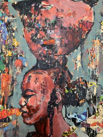 Collage y acrílico sobre madera